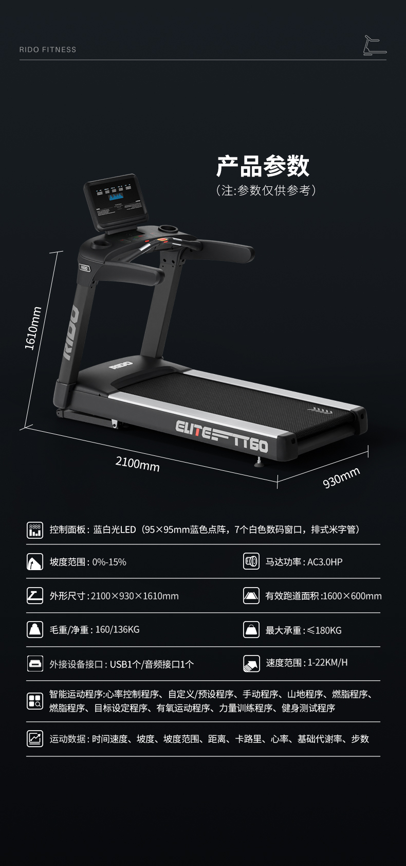 RIDO力动商用跑步机TT60D