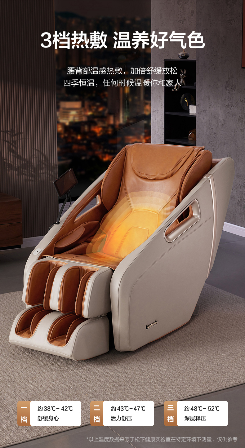 • 产品特点:按摩强度调节/ 气囊力度调节/ 局部热疗/ 智能操控/ 定点按摩/ 蓝牙音响/ 智能检测