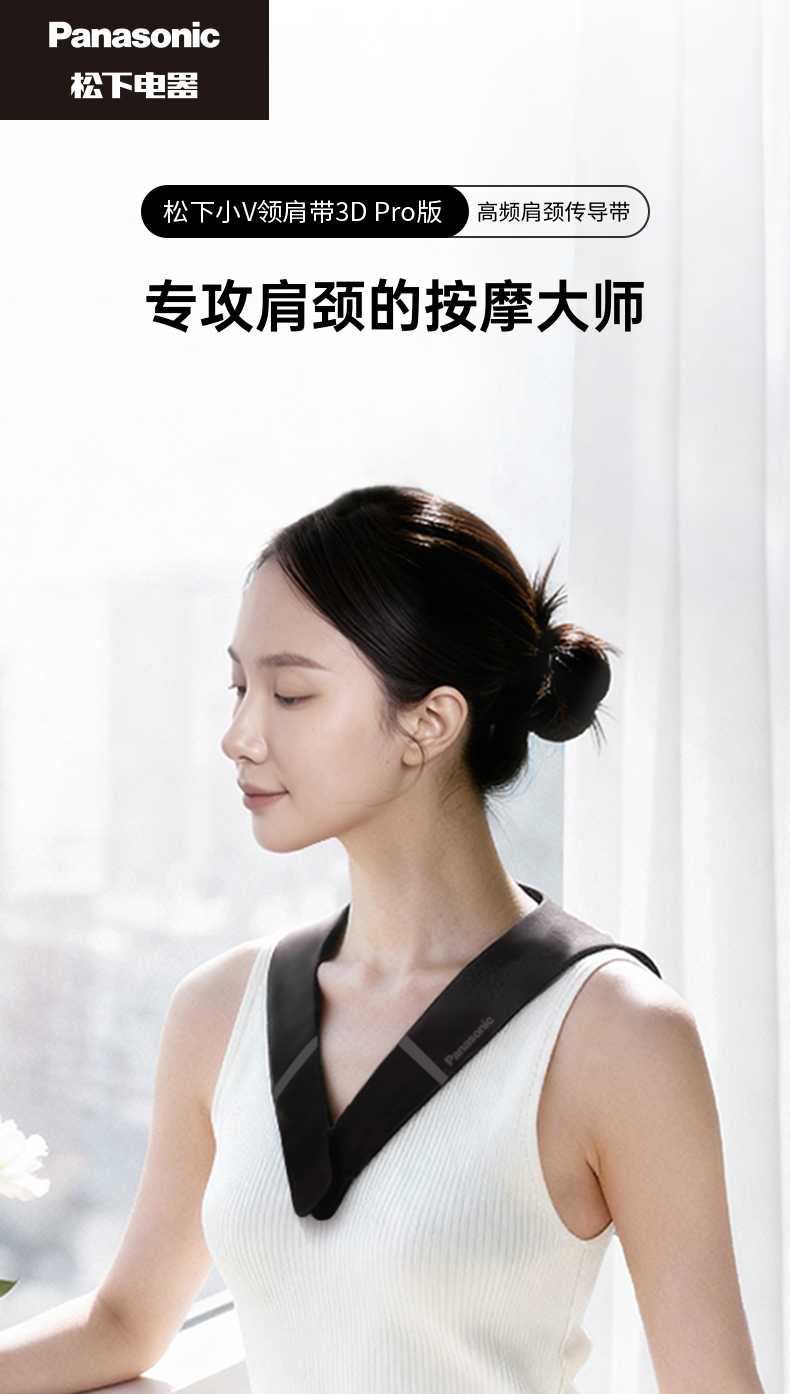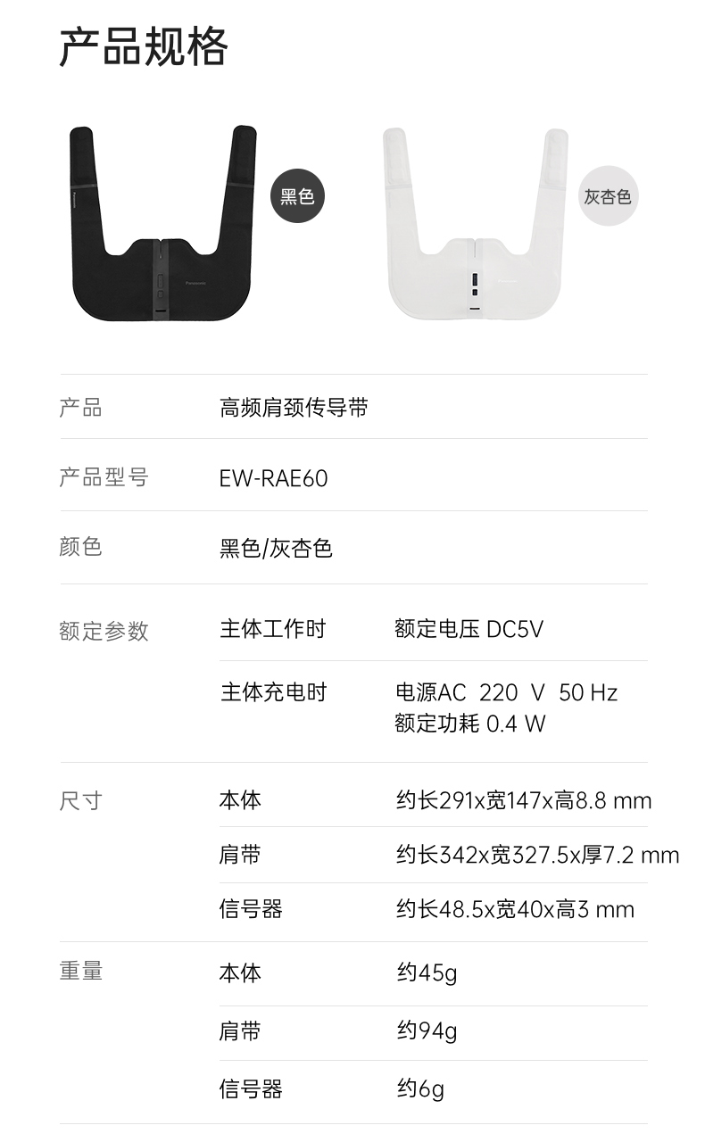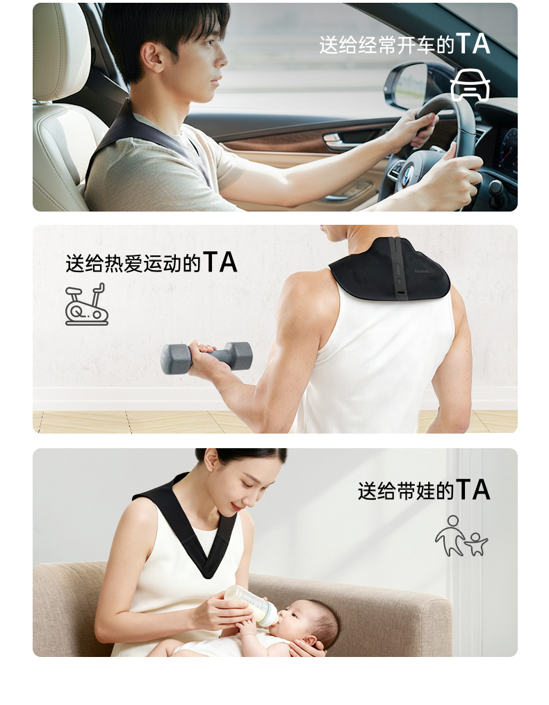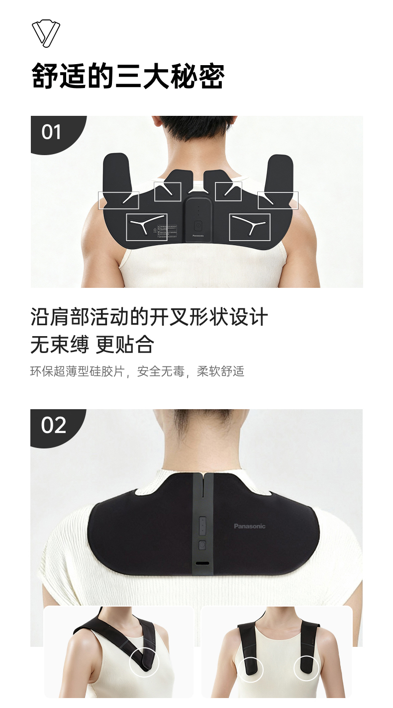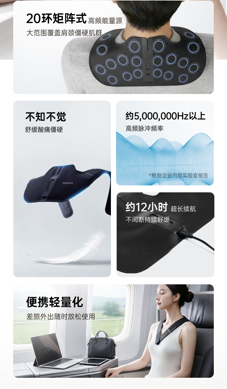 Panasonic松下大V领按摩仪RAE60披肩颈腰部按摩器颈部斜方肌智能高频脉冲